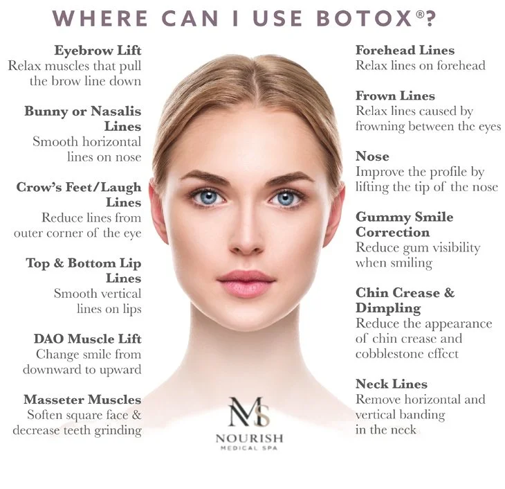 Botox is one of the most popular procedures for reducing muscle movement and improving the appearance of fine lines and wrinkles. Neuromodulators (toxins) are also used to treat a variety of therapeutic conditions such as migraines, TMJ, and excess sweating.